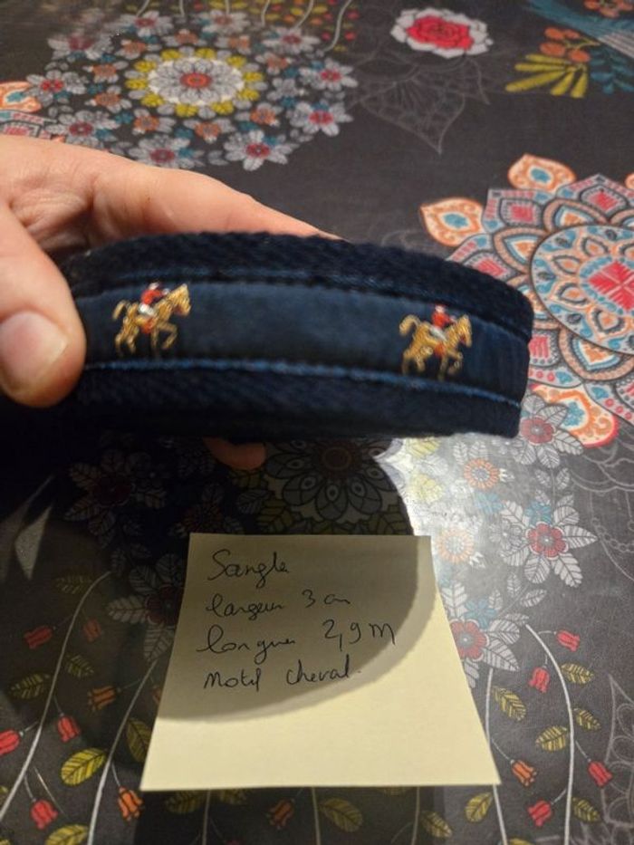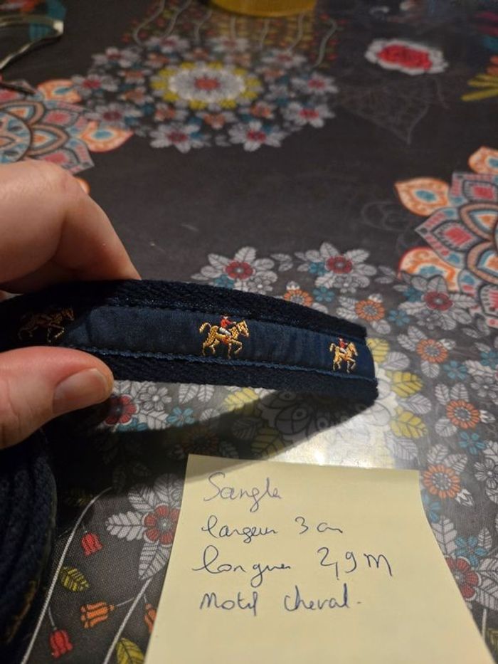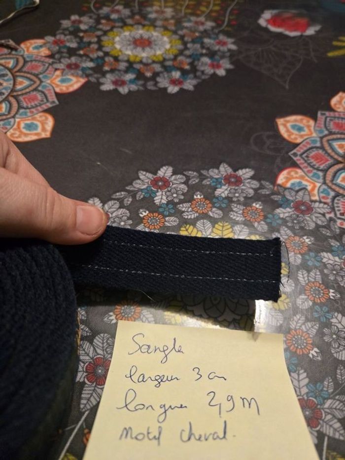 Vend 2m90 de sangle Coloris bleu marine Motif cheval Assez épaisse Largeur 3 cm Idéal pour faire de la couture sac etc.... ⚠️ Les envois se font uniquement via mondial relais, shop2shop by chronopost, relais colis N'hésitez pas a me contacter pour plus d'infos Merci