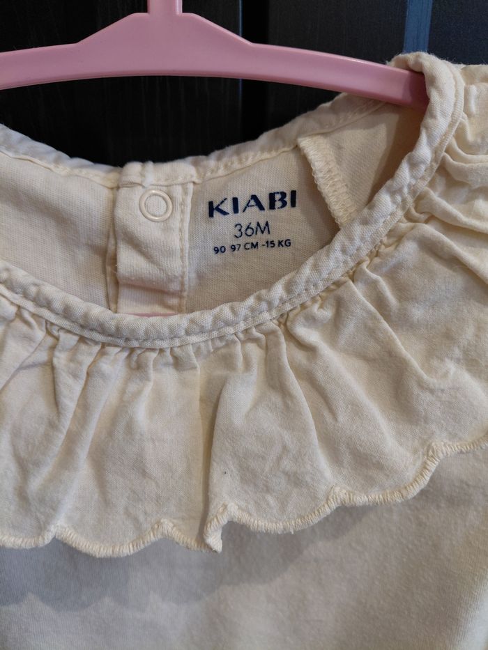 T-shirt manches longues beige à col claudine broderie et dentelles Kiabi taille 3ans 36mois 97cm