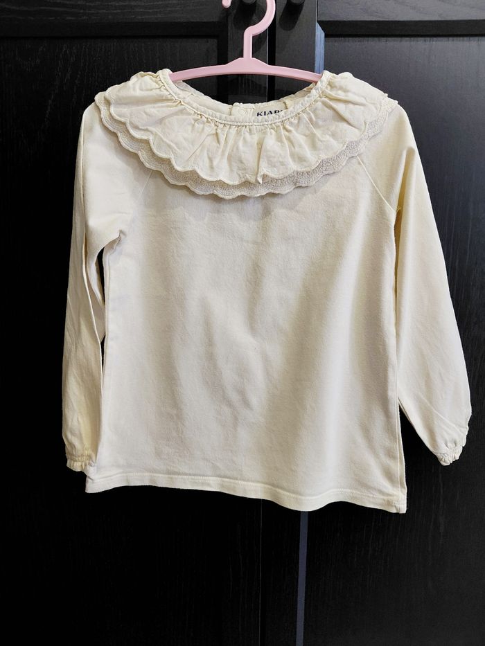 T-shirt manches longues beige à col claudine broderie et dentelles Kiabi taille 3ans 36mois 97cm - photo numéro 1