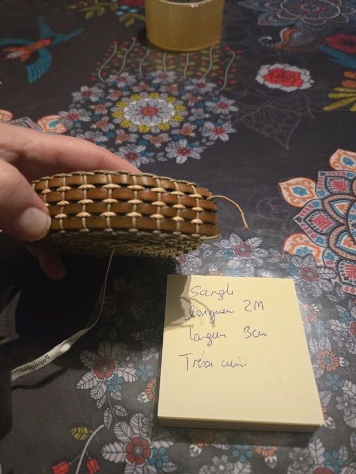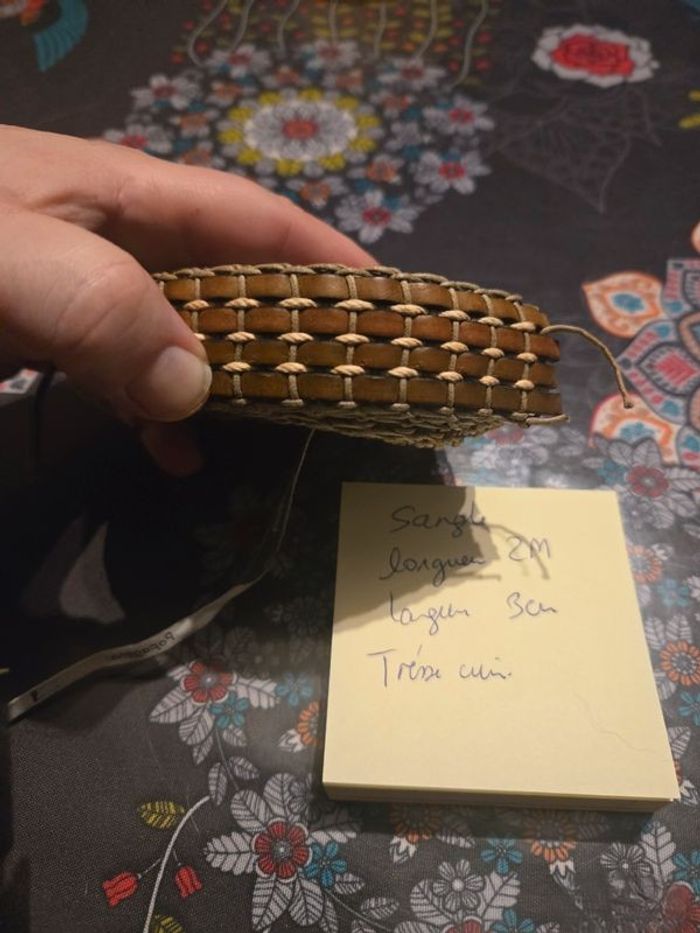 Vend 2m de sangle Tresser cuir Coloris marron foncé Assez épaisse Largeur 3 cm Idéal pour faire de la couture sac etc.... ⚠️ Les envois se font uniquement via mondial relais, shop2shop by chronopost, relais colis N'hésitez pas a me contacter pour plus d'infos Merci