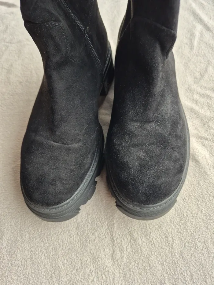 🖤 Bottes Hautes Style "Chunky" - Look Rock & Tendance 🖤 ​Craquez pour cette paire de bottes longues noires à semelles crantées, parfaites pour affronter l’hiver avec style ! ⚡️ Son design robuste et sa matière effet daim apporteront une touche de caractère à toutes vos tenues. ​Détails à noter : ​📏 Taille : 39 (Modèle FR612) ​👢 Style : Semelles épaisses crantées (très confortables) ​✨ État : Bon état général extérieur. ​⚠️ À savoir : Les semelles intérieures sont à changer (voir photos) pour un confort optimal. Vendues sans la boîte d'origine.