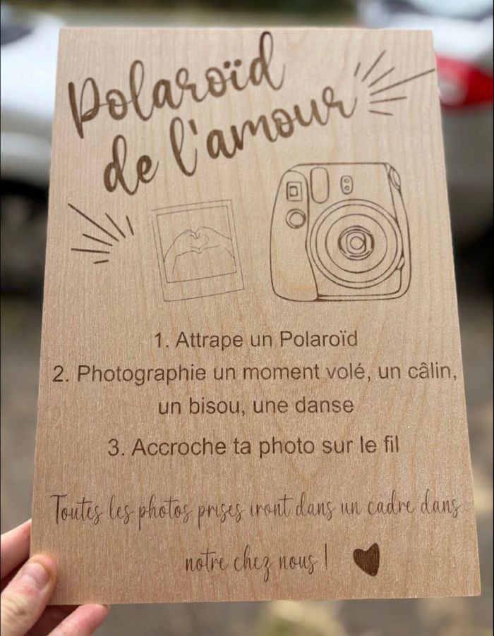 Pancarte Polaroïd de l'amour Format A4 Chevalet en suppléant pour 2e