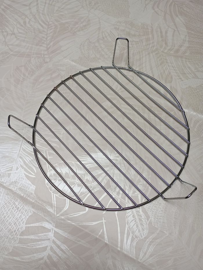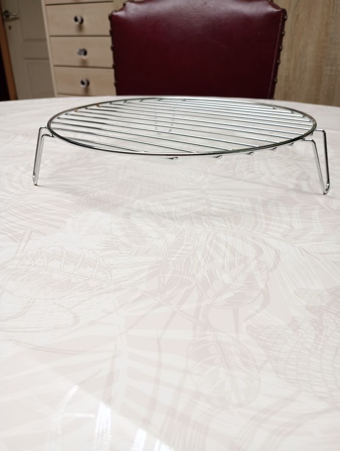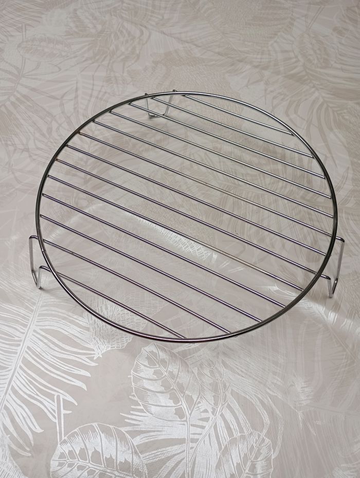 Grille pour micro-ondes. Hauteur : 5,5 cm. Diamètre grille : 27,5 cm. Diamètre pieds : environ 30 cm. Très bon état.