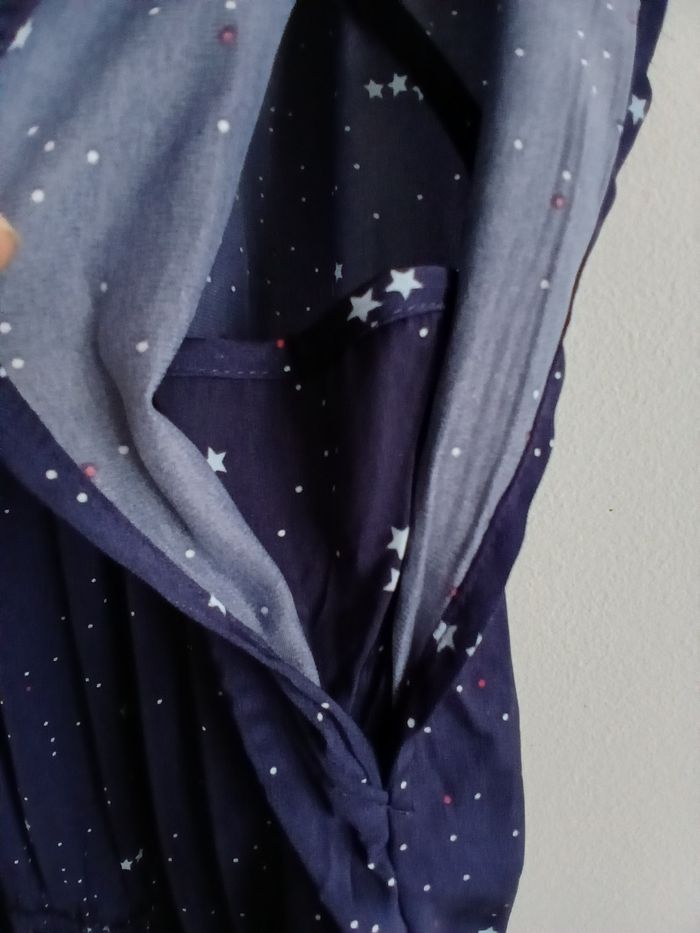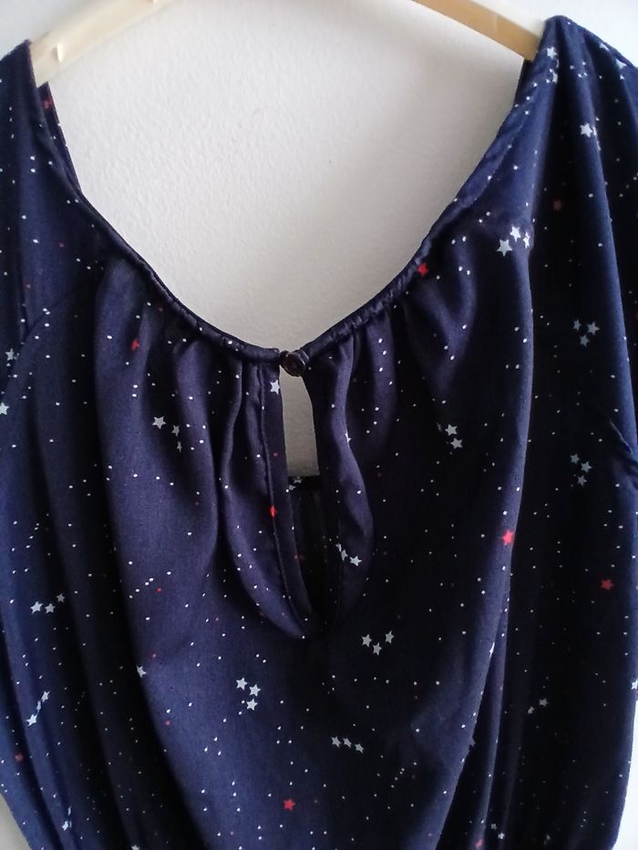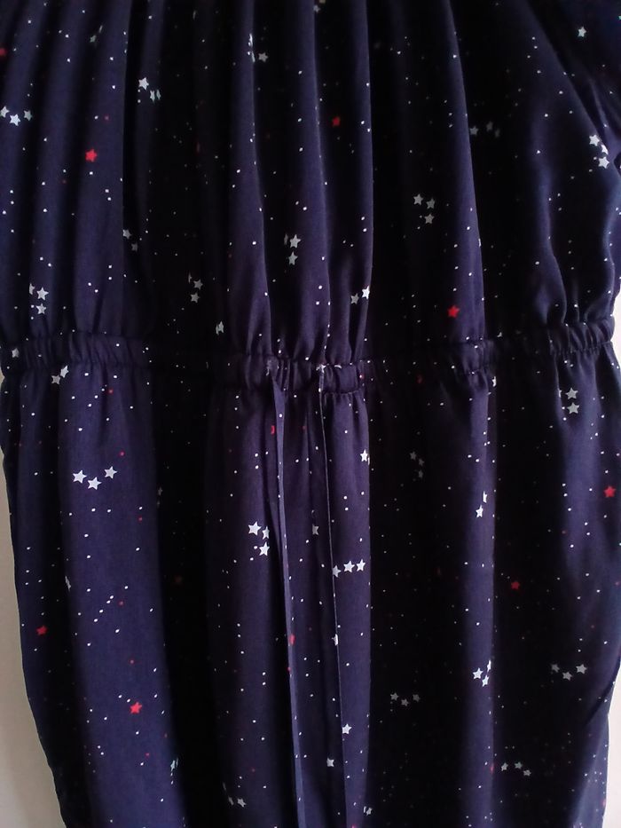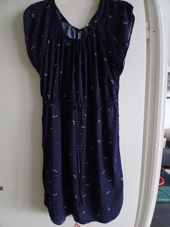 Robe bleue marine t.42,légère motifs étoiles et pois longueur 101cm.