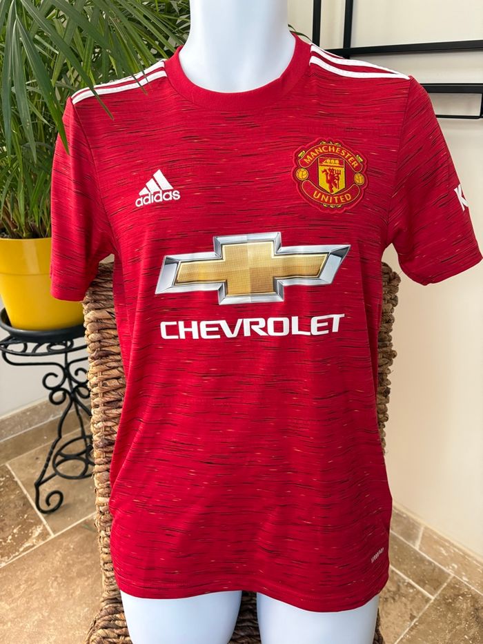 🔥 Maillot officiel Manchester United ✅ Marque : Adidas 📏 Taille : XS 🎨 Couleur : rouge iconique avec bandes Adidas blanches 💰 Sponsor : Chevrolet sur le devant 🌟 Excellent état – prêt à être porté pour soutenir les Red Devils ! ⚽🏟️