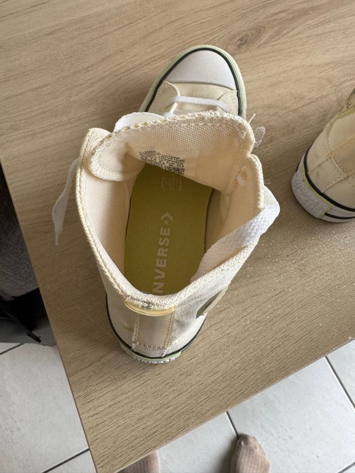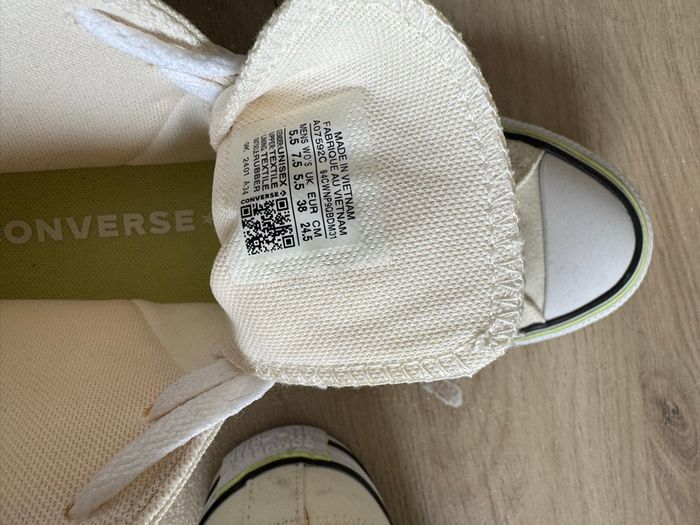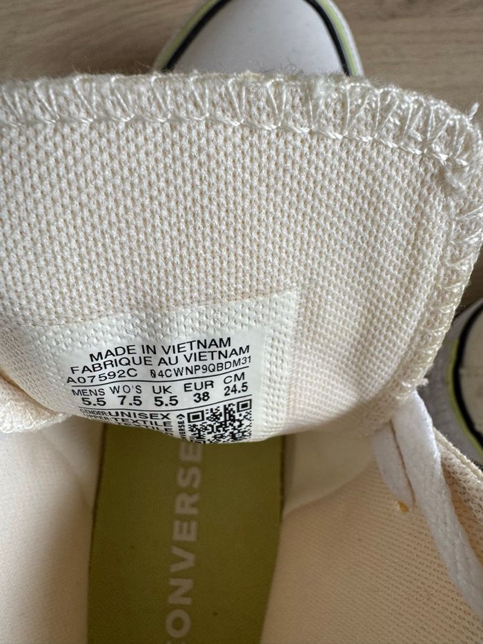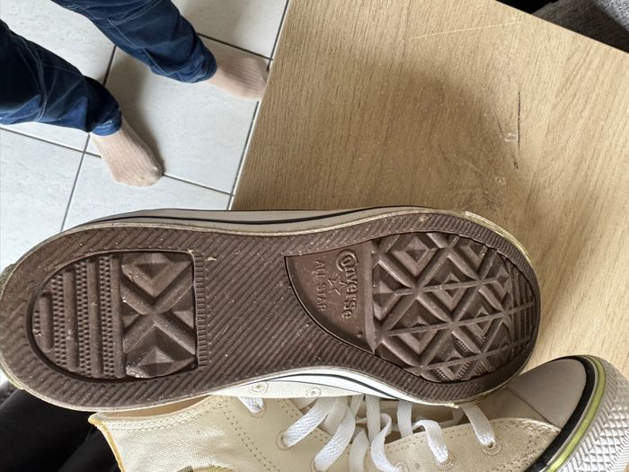 Tennis converse femme porter deux fois taille 38 EUR UK 5.5 attention taille plus grande que votre pointure moi je fais du 39 et le 38 et trop grand