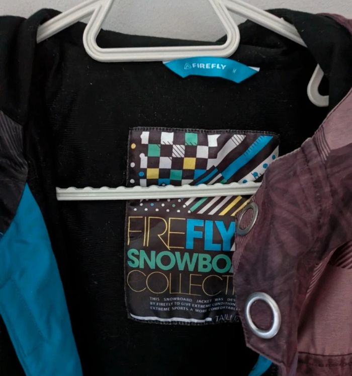 Idéale pour la saison, cette veste de snowboard (ou ski) de la marque Firefly allie style et technicité. Elle est en très bon état et parfaite pour rester au sec et au chaud sur les pistes. Caractéristiques techniques : Protection : Équipée d'une jupe pare-neige intégrée (boutons pression) pour éviter les entrées de neige en cas de chute ou de poudreuse. Praticité : Nombreuses poches zippées, dont une poche poitrine et une poche intérieure pour le masque ou le téléphone. Confort : Doublure intérieure douce et chaude. Capuche ajustable avec cordons de serrage. Design : Motif géométrique moderne dans les tons marron, bleu et gris, très visible sur les pistes. Détails : Taille : M (Medium) État : Irréprochable, fermetures éclair fonctionnant parfaitement, pas de déchirure. Envoi : Rapide et soigné sous 24h via Mondial Relay ou Shop2Shop. N’hésitez pas à consulter mon profil pour faire un lot avec d'autres articles et réduire les frais de port !