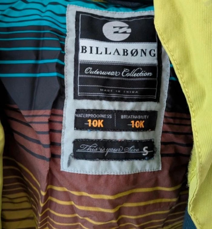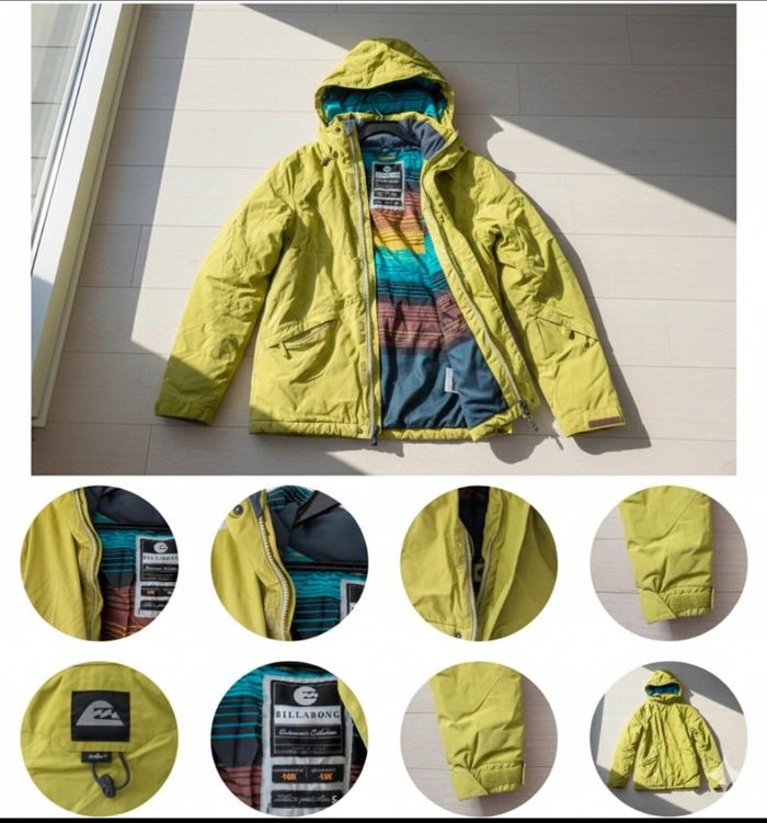 Billabong Technique 10K – Homme – Taille S Vends veste de ski/snowboard haute performance de la marque Billabong (Outerwear Collection). Son coloris vert lime/jaune est parfait pour être bien visible sur les pistes tout en gardant un style rider. Imperméabilité & Respirabilité : Indice 10K / 10K pour rester parfaitement au sec même sous la neige. Équipements : Jupe pare-neige intégrée, capuche ajustable, multiples poches sécurisées et protège-menton doux sur le zip. Design : Doublure intérieure stylée à rayures multicolores. État : Très bon état général, les couleurs sont restées vives. Envoi rapide et très soigné via le transporteur de votre choix. N'hésitez pas à faire un tour sur mon profil pour d'autres articles de ski et profiter de réductions sur les lots !