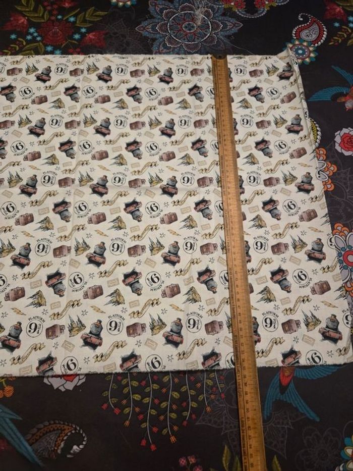 Tissu Harry Potter motif plateforme 9 3/4, train et Poudlard pour création couture et accessoires en cretonne coton. Dimension environ 1m50 x 55 cm Neuf ⚠️ Les envois se font uniquement via mondial relais, shop2shop by chronopost, relais colis N'hésitez pas a me contacter pour plus d'infos supplémentaires Merci