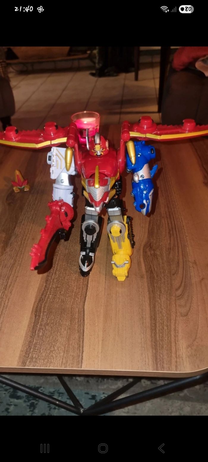 Robot Power Rangers megazord, figurine, regardez les photos svp, je ne sais pas s'il est complet. Vente en état, il lui manque une aille au casque.