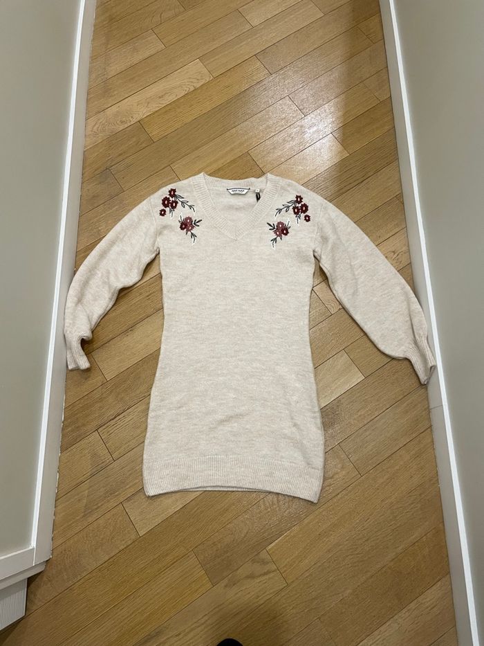Robe pull acrylique neuve Détails avec fleurs brodées Couleur beige