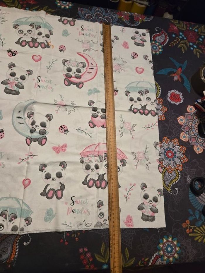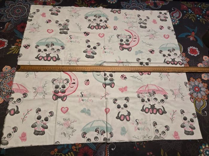 Cause demenagement je fais du tri dans mes affaires et je vend un morceau de tissus a coudre motif panda Taille 1,5m x 69 cm Neuf J ai d'autres articles de couture a vendre nhesitez pas a aller voir mes autres annonces. ⚠️ Les envois se font uniquement via mondial relais, shop2shop by chronopost, relais colis N'hésitez pas a me contacter pour plus d'infos supplémentaires Merci