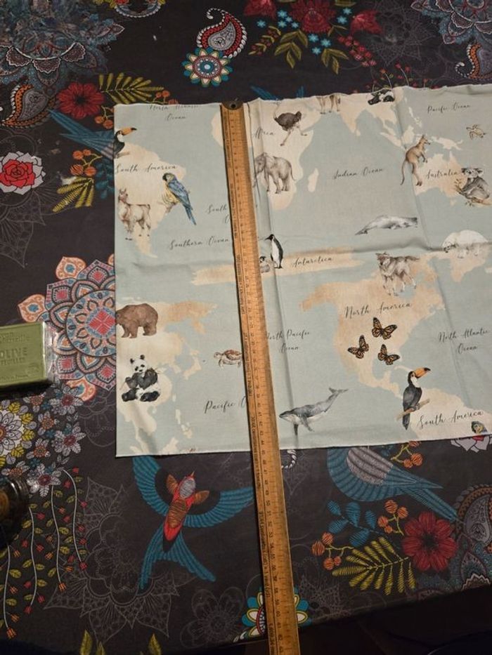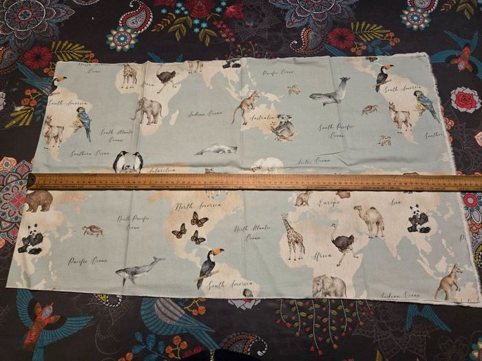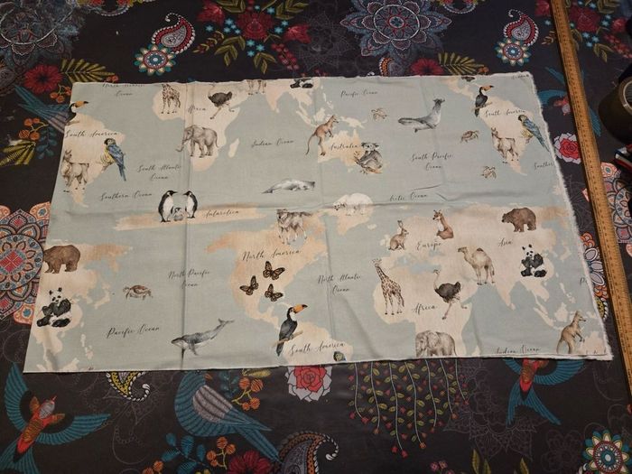 Cause demenagement je fais du tri dans mes affaires et je vend un morceau de tissus a coudre motif animaux du monde Taille 1,5m x 45 cm Neuf J ai d'autres articles de couture a vendre nhesitez pas a aller voir mes autres annonces. ⚠️ Les envois se font uniquement via mondial relais, shop2shop by chronopost, relais colis N'hésitez pas a me contacter pour plus d'infos supplémentaires Merci
