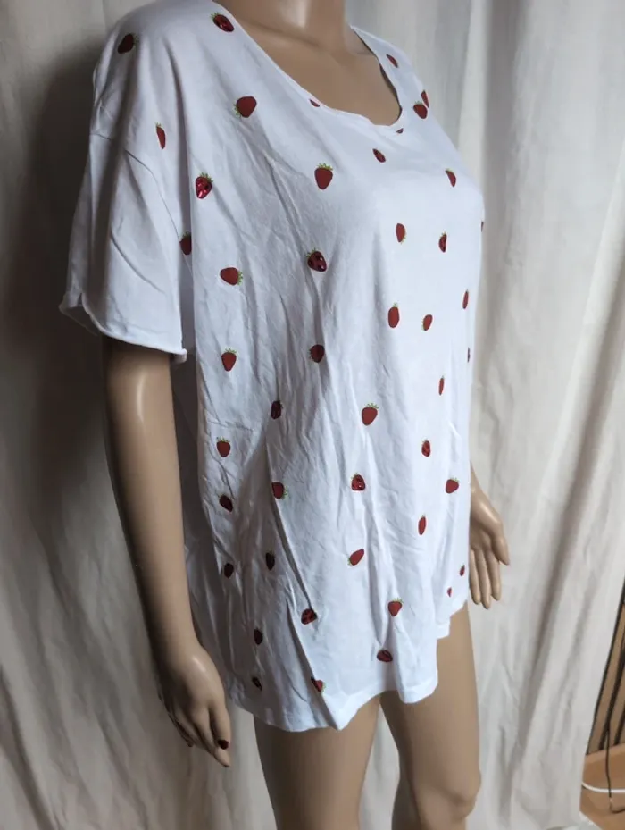 T-shirt frais et léger de la marque In Extenso, parfait pour un look décontracté et estival. Sa couleur blanche est mise en valeur par un motif fraises coloré et gourmand, apportant une touche fun à votre tenue. ✨ Détails du produit : • Marque : In Extenso • Taille : XXL (#vavaneva44) • Couleur : blanc • Motif : fraises • Coupe confortable, agréable à porter • Idéal pour le quotidien ou les sorties décontractées 📦 Envoi rapide et soigné ❌ Maison non-fumeur #tshirt #InExtenso #blanc #fraises #femme #mode #grandetaille #vavaneva44 #occasion #secondevie