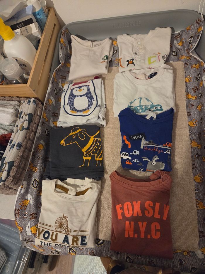 🌹Lot de 8 hauts (6 manches longues et 2 manches courtes) + 1 chemise 🌹Neufs 🌹Multi marques 🌹12 mois