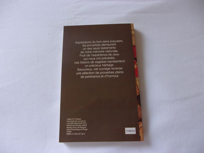 Vends mini encyclopédie des proverbes et dictions de France. Neuf. "Expressions du bon-sens populaire, les proverbes demeurent un des seuls testaments de notre mémoire nationale. Fruit de l'expérience de ceux qui nous ont précédés, ces trésors de sagesse représentent un précieux héritage. Savoureux, cet ouvrage recense une sélection de proverbes pleins de pertinence et d'humour". N'hésitez pas à consulter mes autres annonces.