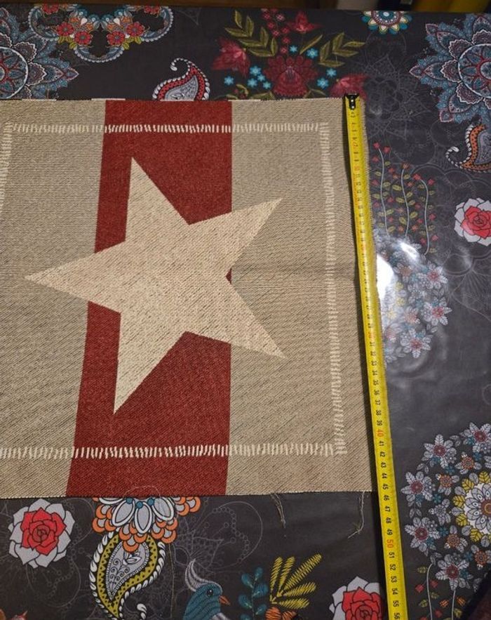 Panneau Gobelin motif etoile 45 x 47cm Matériel: 75% polyester 22% coton 3% polyacrylique - lavable jusqu'à 40°C Le tissu Gobelin est idéal pour les sacs, les sacs à dos, les oreillers, etc. Le Gobelin est un tissage jacquard classique, un tissu d'ameublement noble et durable. Il est utilisé dans les meubles d'assise classiques de haute qualité avec un rembourrage ferme ou dans le domaine des chaises. ⚠️ Les envois se font uniquement via mondial relais, shop2shop by chronopost, relais colis N'hésitez pas a me contacter pour plus d'infos supplémentaires Merci