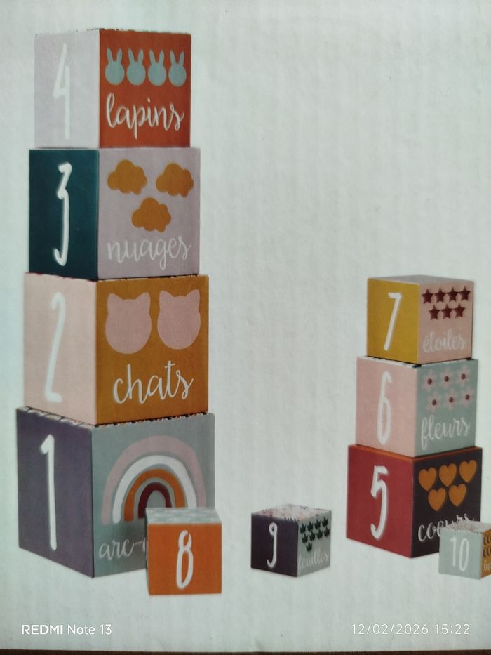 10 cubes gigognes pour fabriquer une pyramide de 10 étages. Cubes en carton pour découvrir les chiffres et les lettres