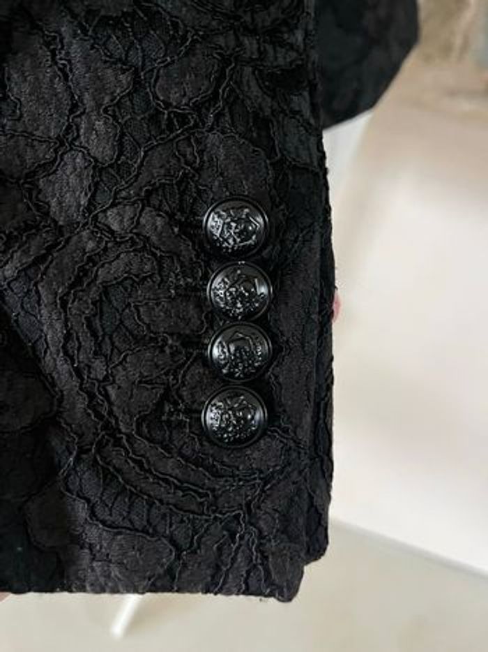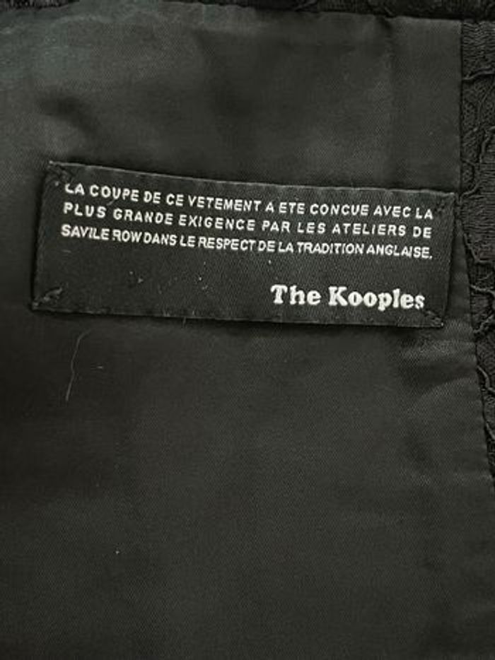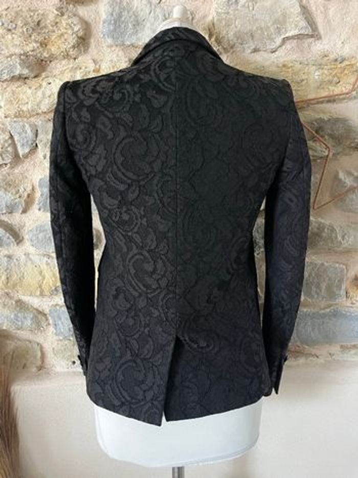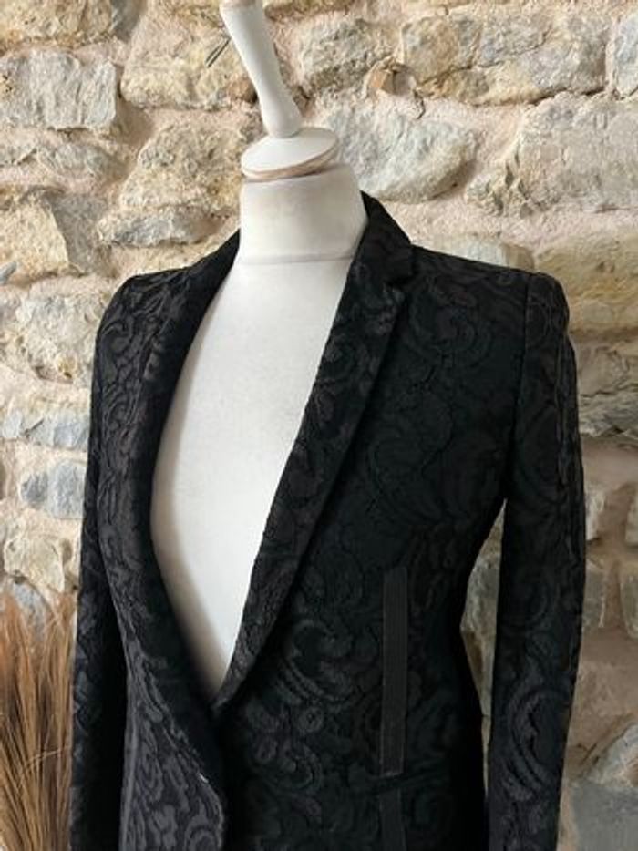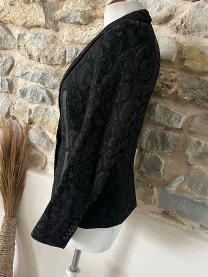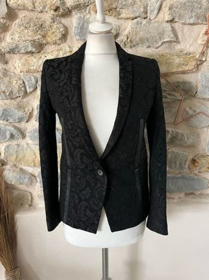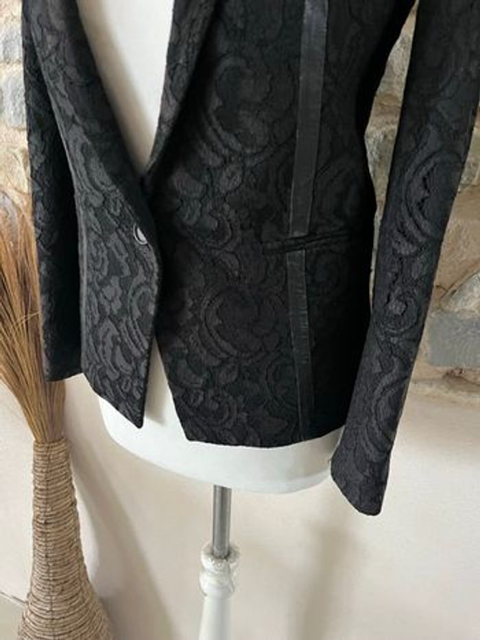 Vends joli blazer cintré The Kooples Noir en dentelle avec empiècements cuir Taille 34