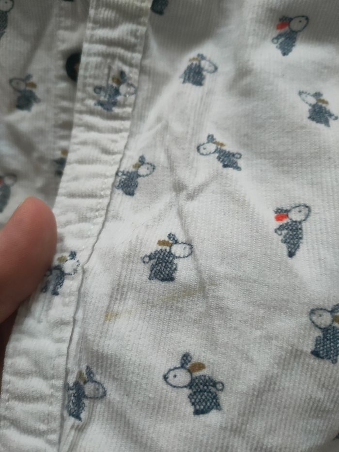 Chemise manches longues pour garçon en taille 23 mois de chez obaibi. Il y a une petite tache sur le devant mais qui est assez discrète voir photo, sans trou. Maison non-fumeur mais avec animaux.