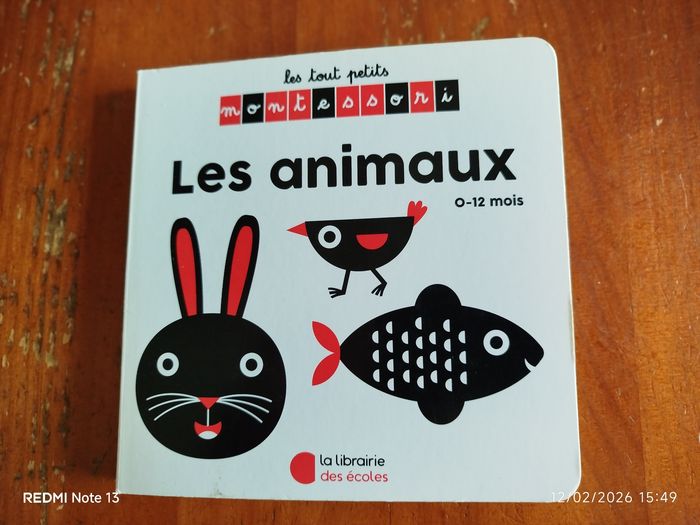 Le livre "Les animaux" est comme neuf inspiré de la pédagogie Montessori. Imagier sur le corps un peu abîmé en haut