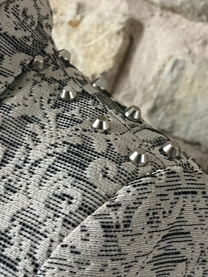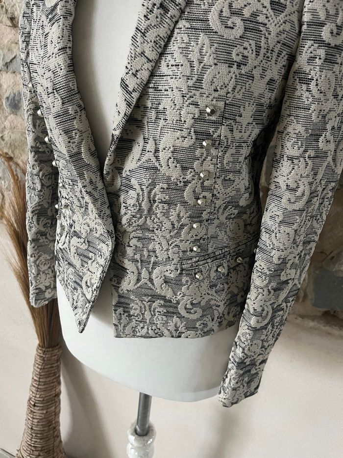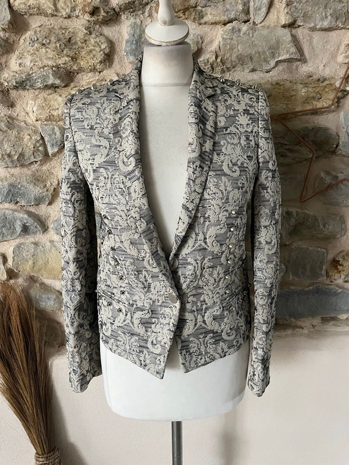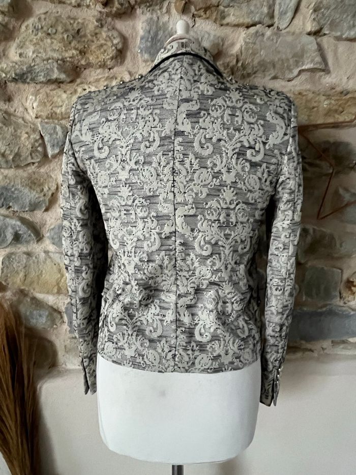 Veste blazer neuf avec étiquette The Kooples Motifs écrus gris Clous argentés sur le devant et les épaules Taille 34
