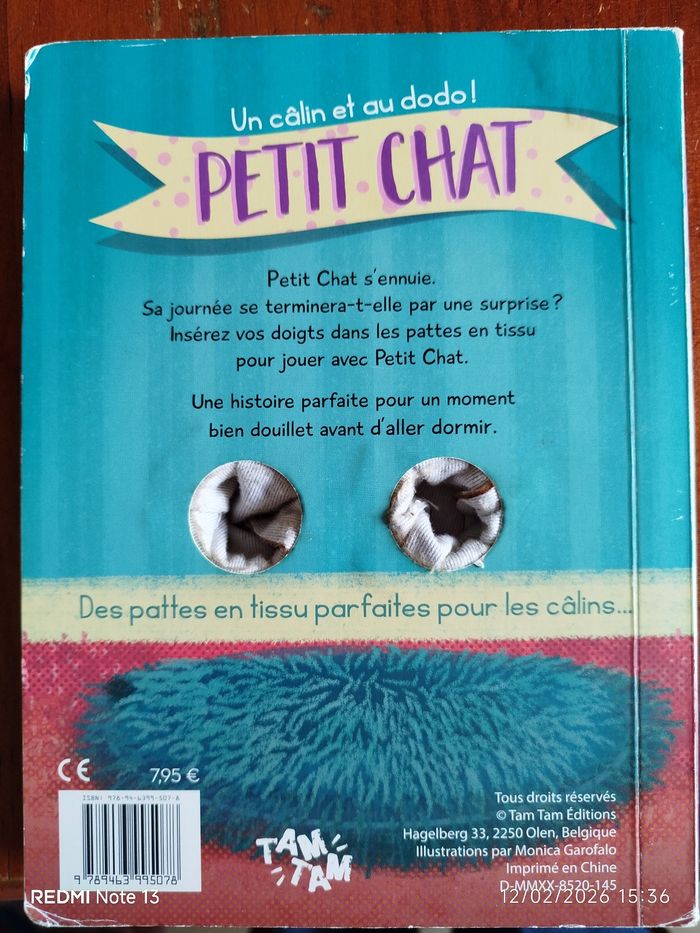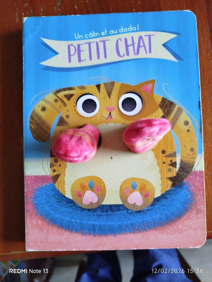 Imagiers tactiles et sonores. "Petit chat" est une histoire à raconter en insérant les doigts dans les pattes en tissu