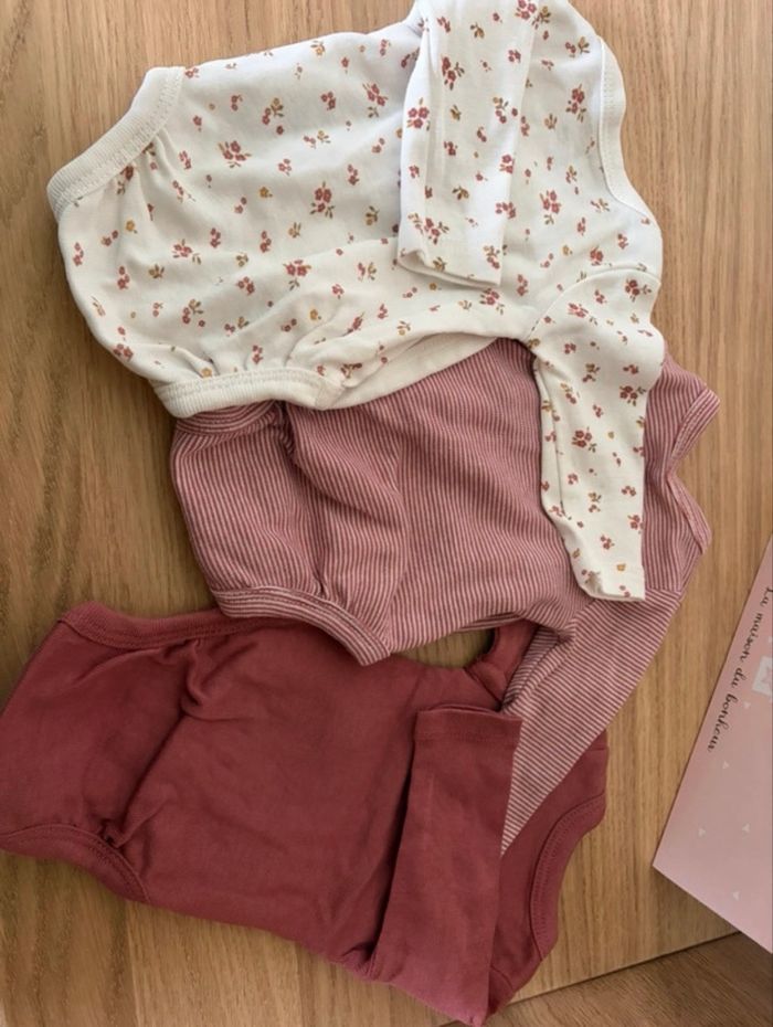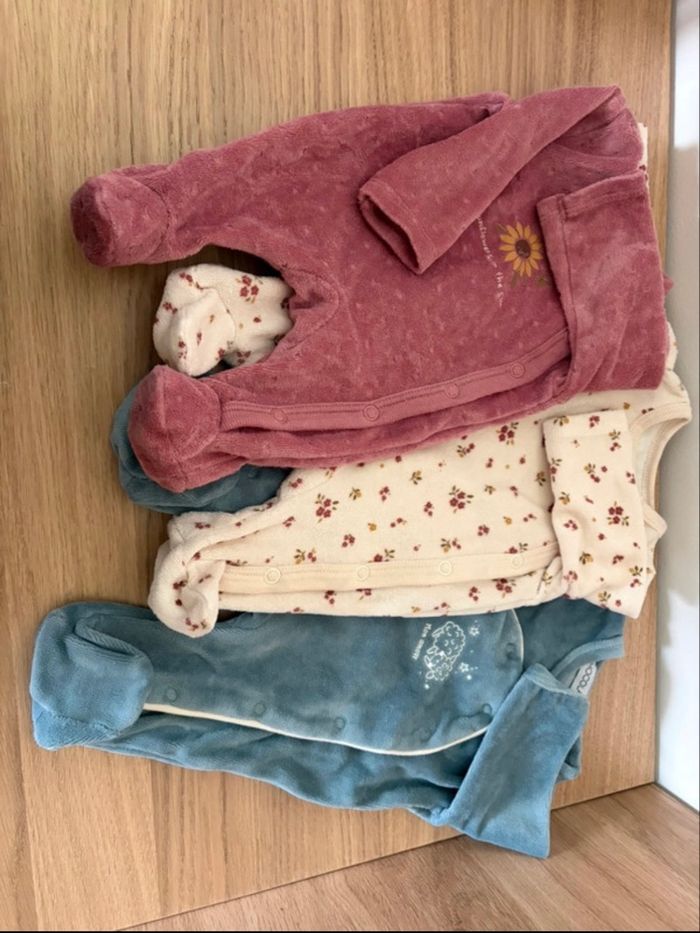 Bonjour je vends des pyjamas et body de 0 mois portés qu’une seule fois. Bon état. Je vends le tout pour 5 euros.
