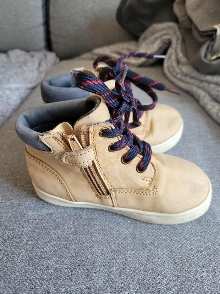Vend chaussures garçon pointure 22 beige , avec semelle contrefort idéale pour la marche des petits. 3 euros
