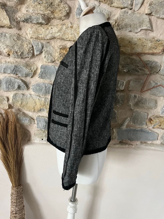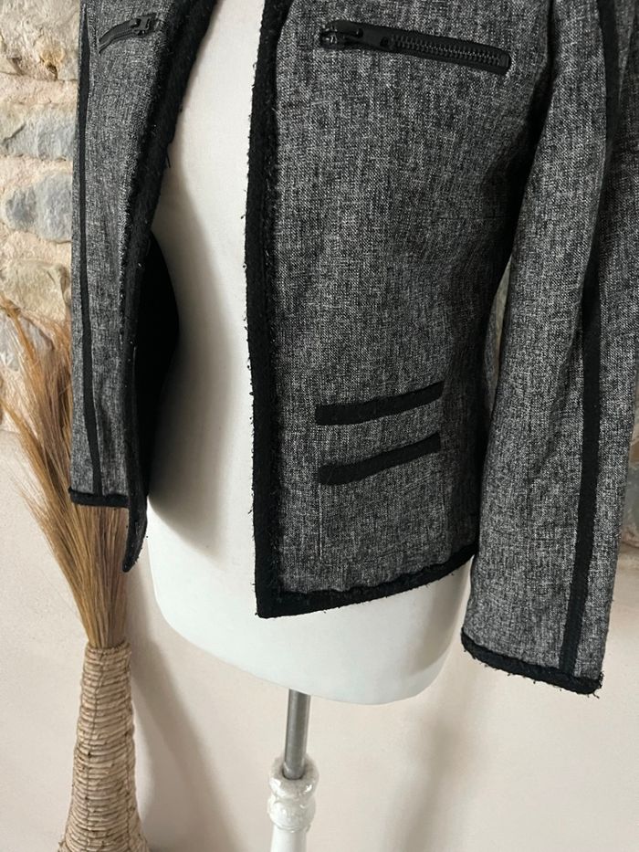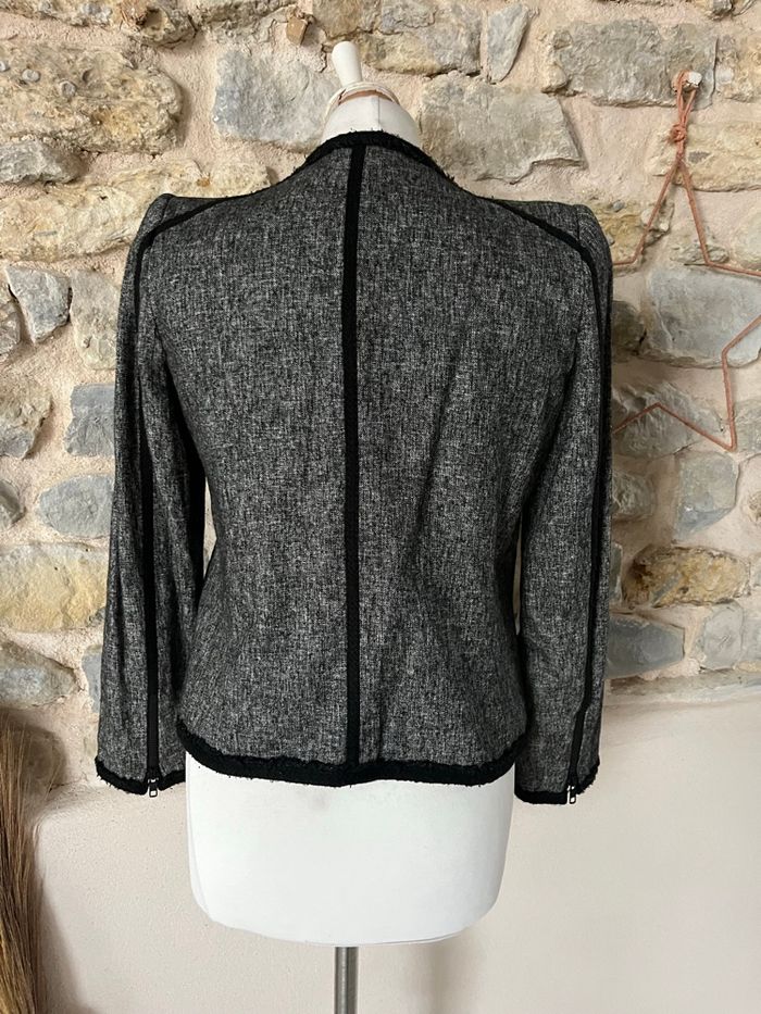 Vends jolie veste The Kooples Gris effet chiné avec liserés noirs Taille 36