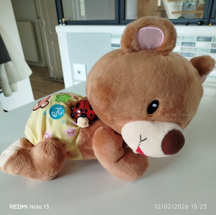 La fonction chant ne marche plus, et il ne se déplace plus. 3 boutons fonctionnent qui indiquent la forme et la couleur. La coccinelle s'allume.