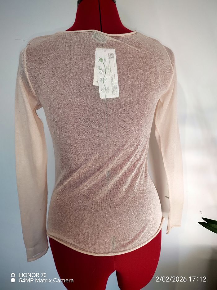 Petit pull fin en voile rose. Neuf Mztiere extensible Sublime avec un petit t shirt en dessous. Taillexs/34 #geliscyrilletaille34 #geliscyrilletailleXS Ref1/ca10
