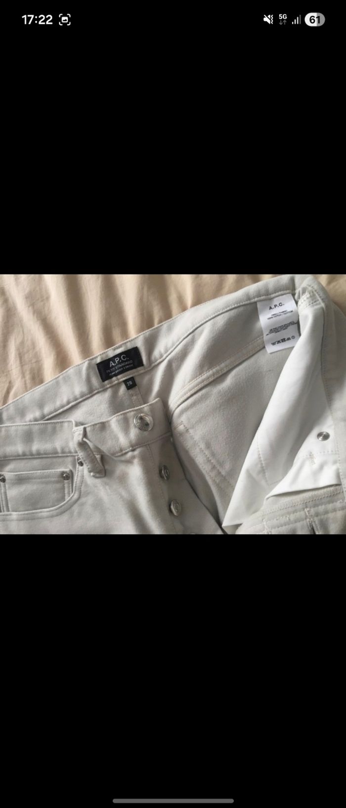 Jean APC beige NEUF *Jean APC Taille 28 - Style Élégant et Moderne** Découvrez ce **jean APC** de taille 28, un indispensable pour les amateurs de mode. Conçu pour convenir aussi bien aux hommes qu'aux femmes, cе modèle petit standard (CORBEU-M09002) vous apportera confort et style au quotidien. **Caractéristiques :** **Couleur :** AAE MASTIC **Prix en magasin :** 160€ En parfait état, prêt à rejoindre votre garde-robe ! Ne manquez pas cette occasion d'ajouter une pièce tendance et intemporelle à votre collection. **