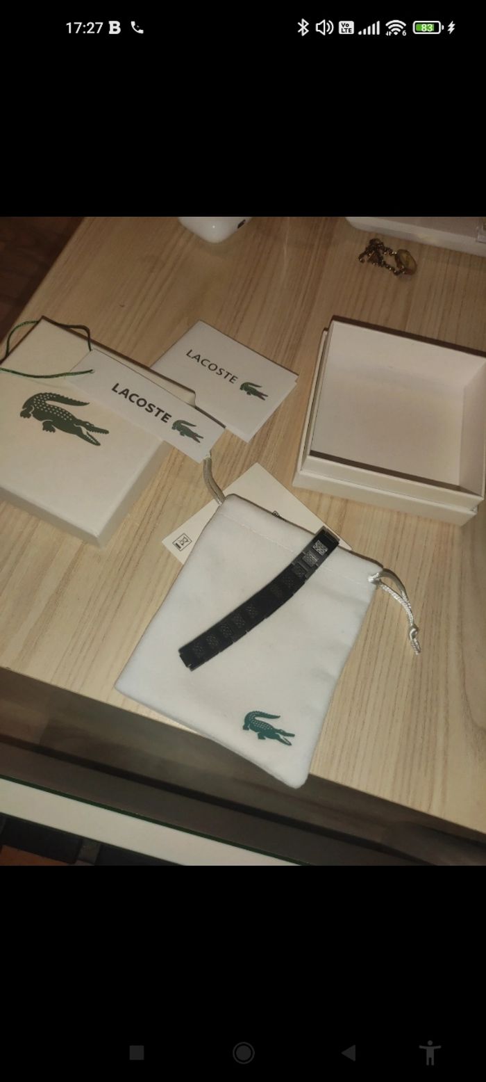 Je vend un magnifique bracelet noir Lacoste jamais était porté et contient tjr les étiquettes d'origine pour plus d'informations n'hésitez pas à me contacter.