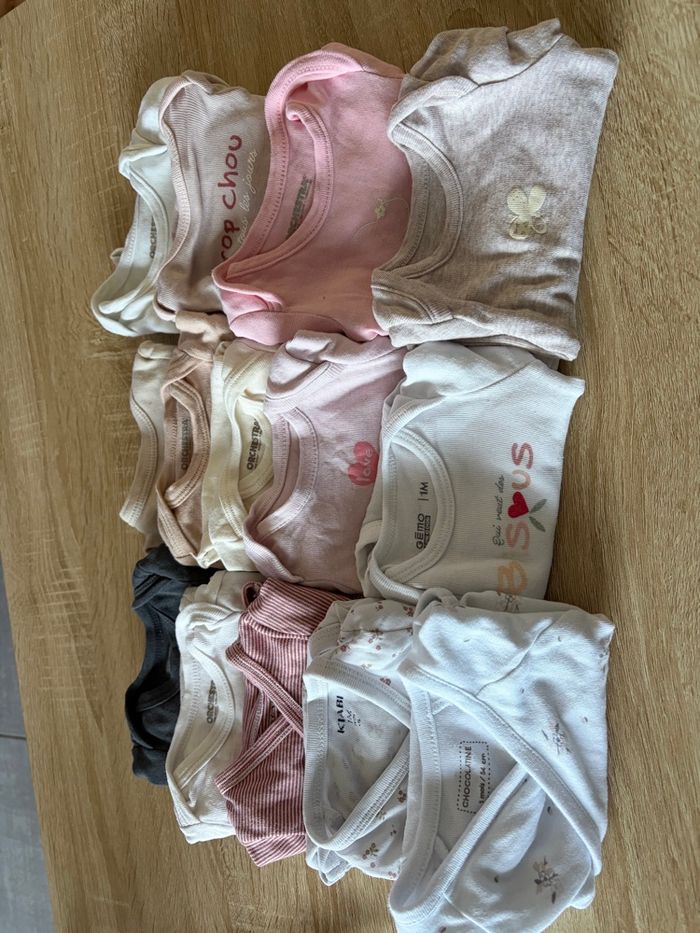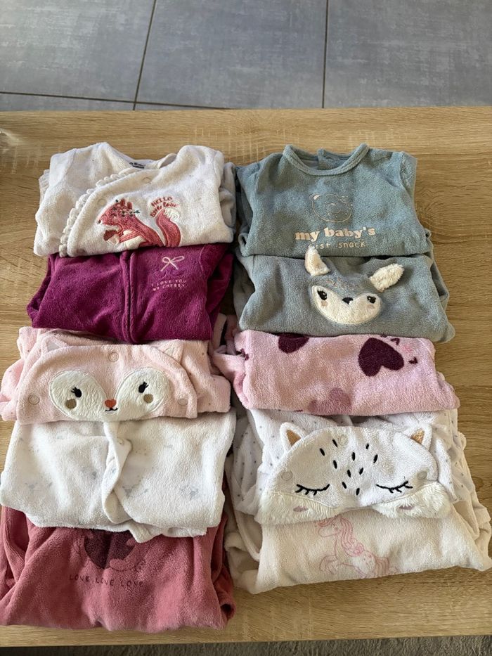 Je vends plusieurs pyjamas et de body, je vends tout en lot, vous avez du gemo du Kiabi et Orchestra ma fille, les apporte un mois et demi Il y a 10 pyjamas Et 14 body