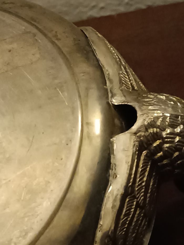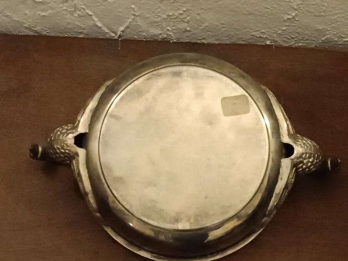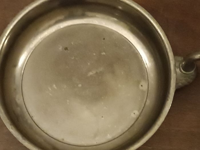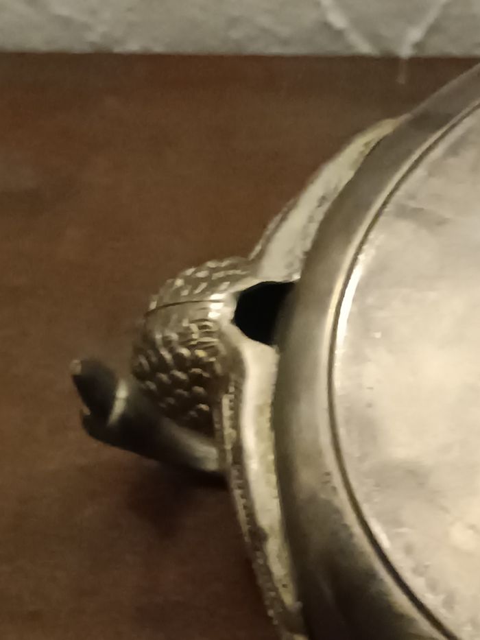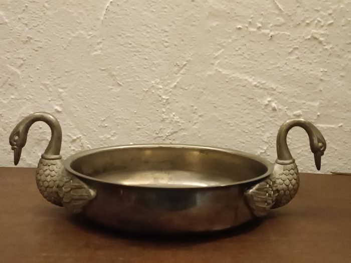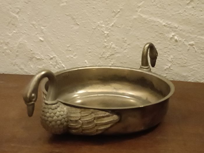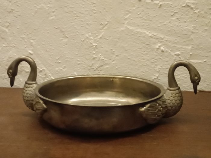 Coupe vintage en étain, métal, anses cygnes diamètre 18 cm x 4 cm haut, hauteur totale 8 cm en état cf photos