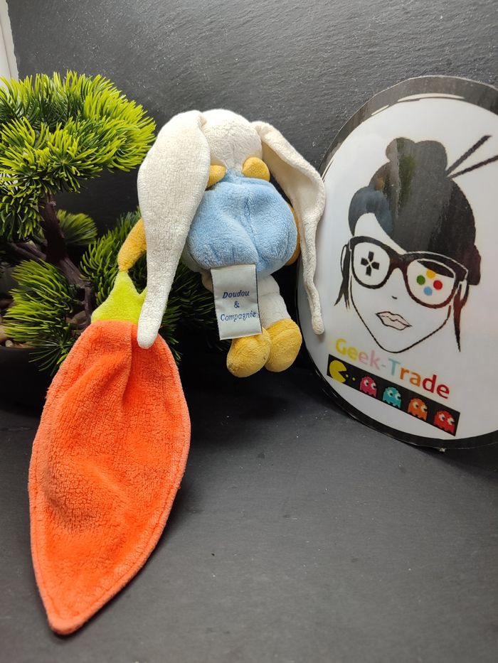 73 Doudou et compagnie lapin ptit doux bleu jaune carotte blanc ancien Vintage  - photo numéro 1