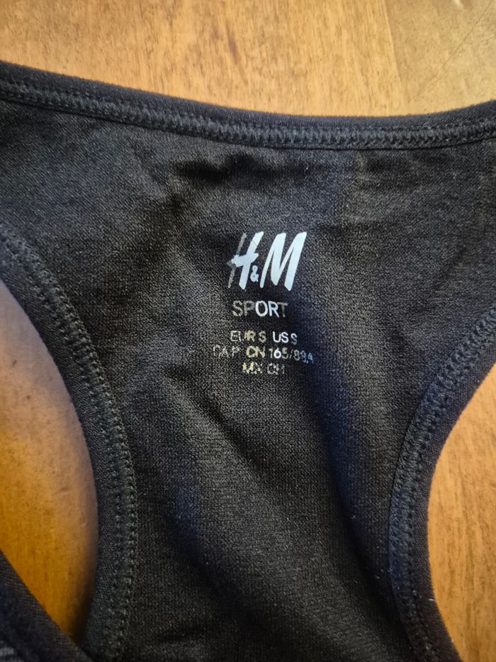 Je vends cette brassière de sport H&M en très bon état, de taille S et de couleur noire. - Type de produit : Brassière de sport - Marque : H&M - Taille : S - Couleur : Noir - Caractéristiques : Coupe ajustée, Matière technique, Dos nageur N'hésitez pas à me contacter pour plus d'informations ou de photos.