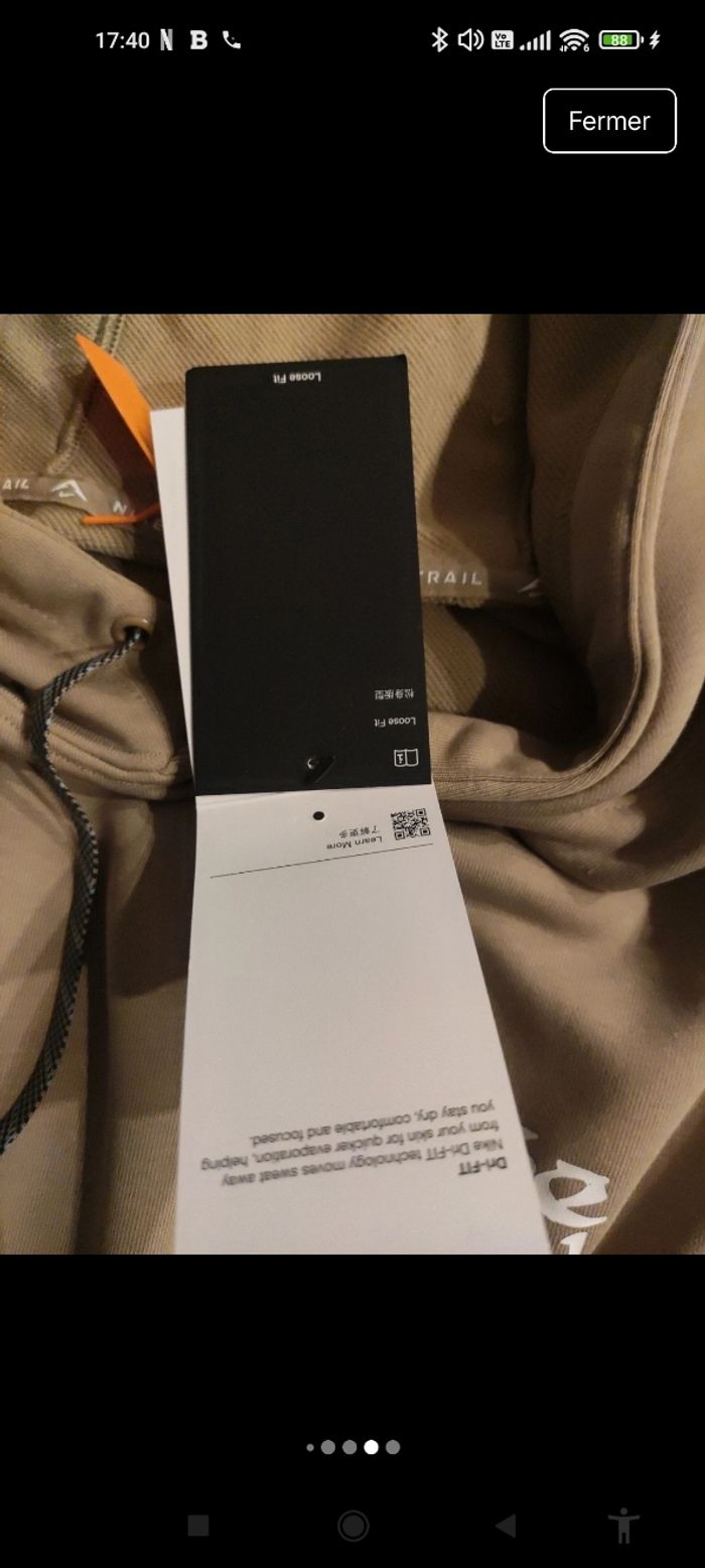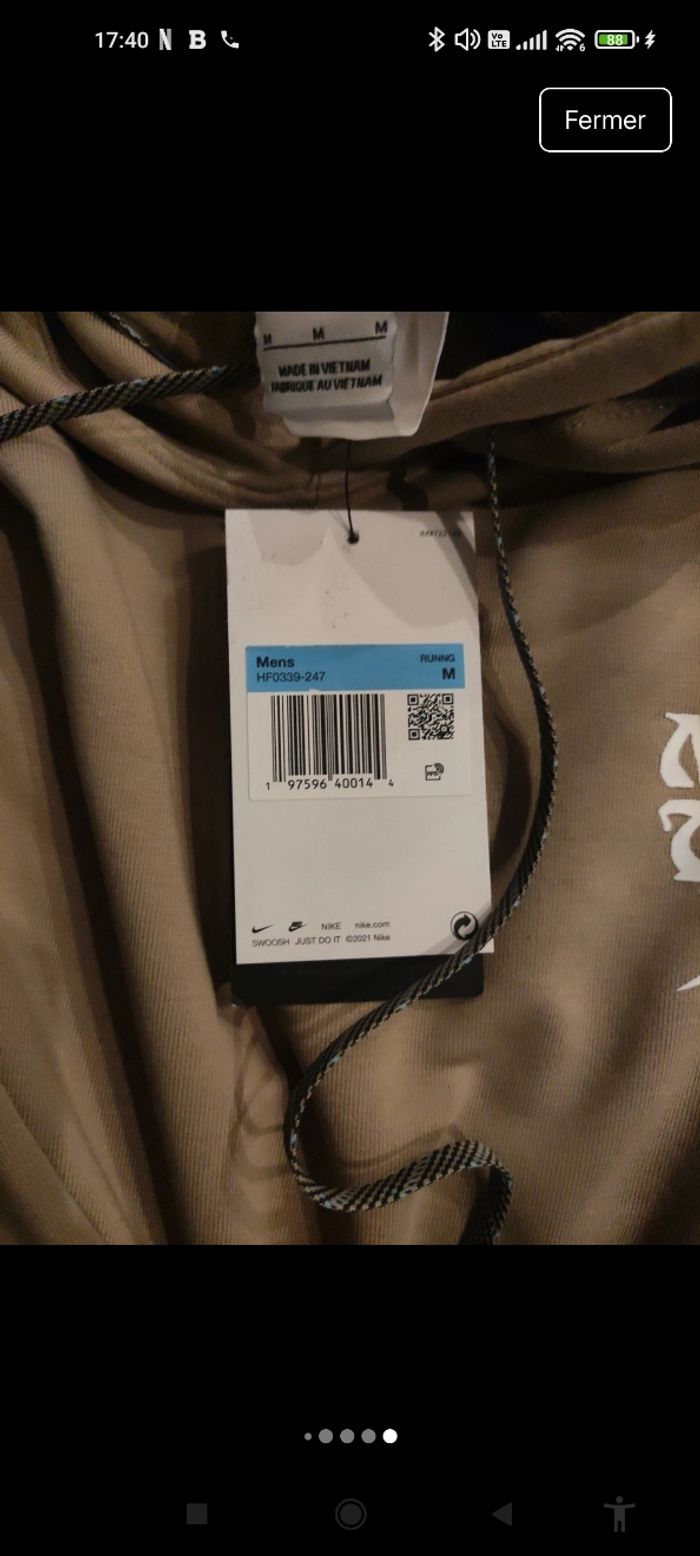 Pull Nike trail kaki en taille M.Jamais porté,neuf avec étiquette,fourni avec une pochette plastifié en plus de l'emballage, qr fonctionnel et authentique amenant directement sur le site Nike. Pour plus d'informations n'hésitez pas à me contacter directement je répond très vite.