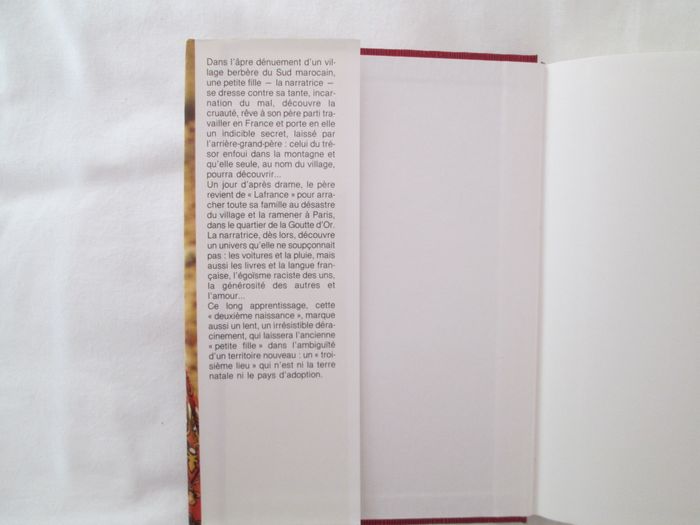 Vends livre Les yeux baissés de Tahar Ben Jelloun. Comme neuf. "Dans l'âpre dénuement d'un village berbère du Sud marocain, une petite fille - la narratrice - se dresse contre sa tante, incarnation du mal, découvre la cruauté, rêve à son père parti travailler en France et porte en elle un indicible secret, laissé par l'arrière-grand-père : celui du trésor enfoui dans la montagne et qu'elle seule, au nom du village, pourra découvrir ... Un jour d'après drame, le père revient de "Lafrance" pour arracher toute sa famille au désastre du village et la ramener à Paris, dans le quartier de la Goutte d'Or. La narratrice, dès lors, découvre un univers qu'elle ne soupçonnait pas : les voitures et la pluie, mais aussi les livres et la langue française, l'égoïsme raciste des uns, la générosité des autres et l'amour ... Ce long apprentissage, cette "deuxième naissance", marque aussi un lent, un irrésistible déracinement, qui laissera l'ancienne "petite fille" dans l'ambiguïté d'un territoire nouveau : un "troisième lieu" qui n'est ni la terre natale ni le pays d'adoption. N'hésitez pas à consulter mes autres annonces.