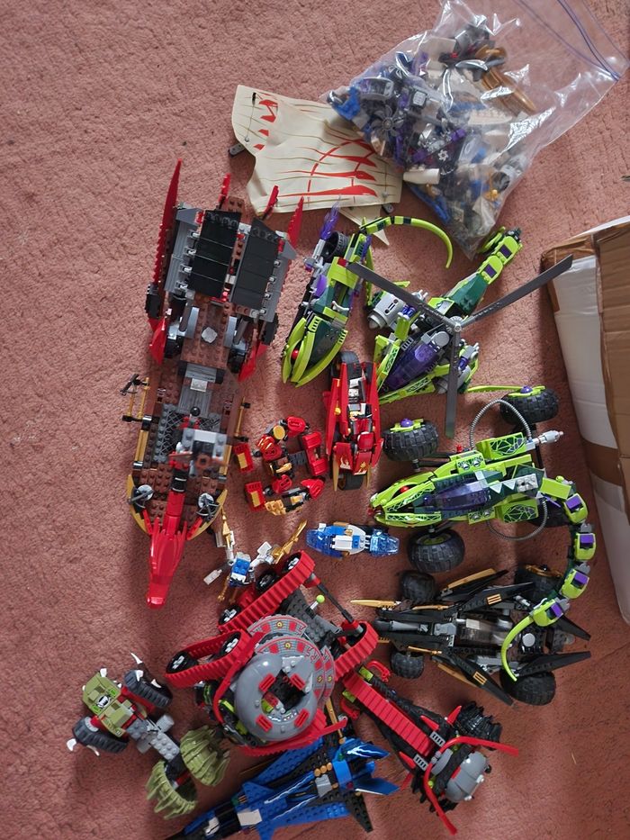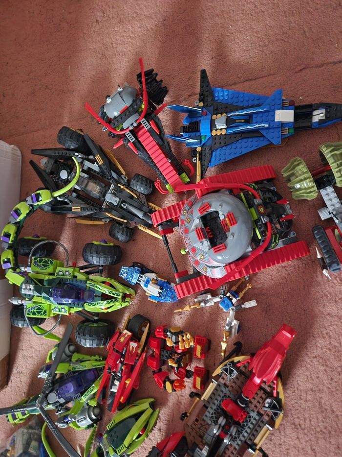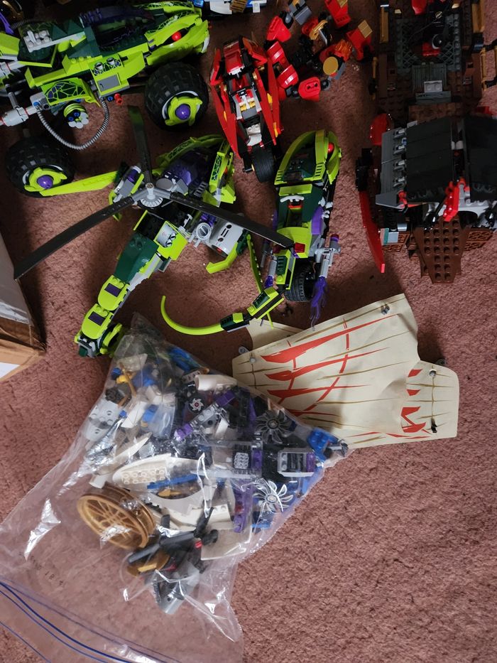 bonjour je vend ces véhicules de lego ninjago il manque des pièces sur les véhicules j'ai pas retrouver de personnages avec faire offre a l'unité ou le lot