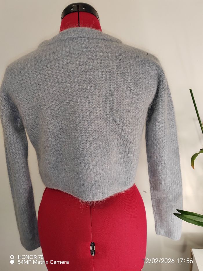 Tres doux epais et chaud Manches longues Matiere extensible Longueur 40 cm Largeur a plat sous les aisselles 49 cm Tailles/36 Couleur gris avec des nuances de parme #geliscyrilletaille36 #geliscyrilletailleS Ref4/ca10