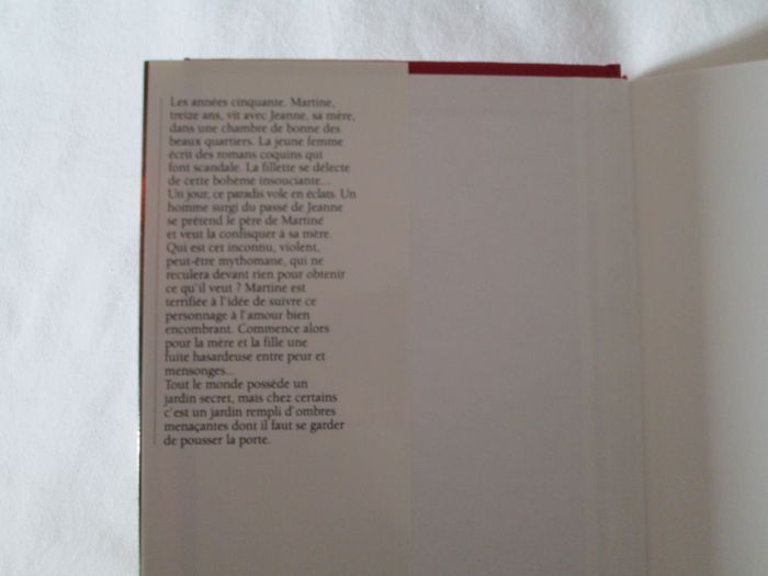 Vends livre Les Ombres du Jardin de Serge Brussolo. Comme neuf. "Les années cinquante. Martine, treize ans, vit avec Jeanne, sa mère, dans une chambre de bonne des beaux quartiers. La jeune femme écrit des romans coquins qui font scandale. La fillette se délecte de cette bohème insouciante ... Un jour, ce paradis vole en éclats. Un homme surgit du passé de Jeanne se prétend le père de Martine et veut la confisquer à sa mère. Qui est cet inconnu, violent, peut-être mythomane, qui ne reculera devant rien pour obtenir ce qu'il veut ? Martine et terrifiée à l'idée de suivre ce personnage à l'amour bien encombrant. Commence alors pour la mère et la fille une fuite hasardeuse entre peur et mensonges ... Tout le monde possède un jardin secret, mais chez certains c'est un jardin rempli d'ombres menaçantes dont il faut se garder de pousser la porte". N'hésitez pas à consulter mes autres annonces.