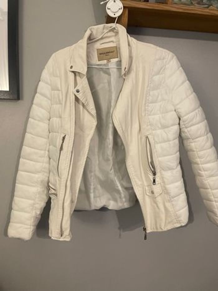 Veste bi matière blanche effet molletonné effet cuire Très bon état Négociable dans la limite du raisonnable