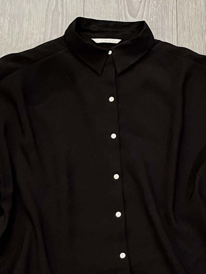 Chemise blouse noire Bouton blanc Marque Camaïeu En viscose Belle coupe Excellent Etat Envoi soigné et rapide