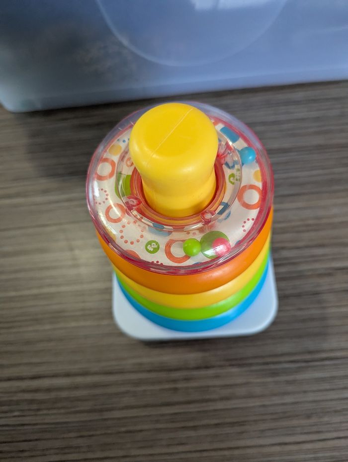 Jouet d'éveil Anneaux en pyramide empilable Avec hochets et perles Avec base à bascule Multicolore / arc en ciel