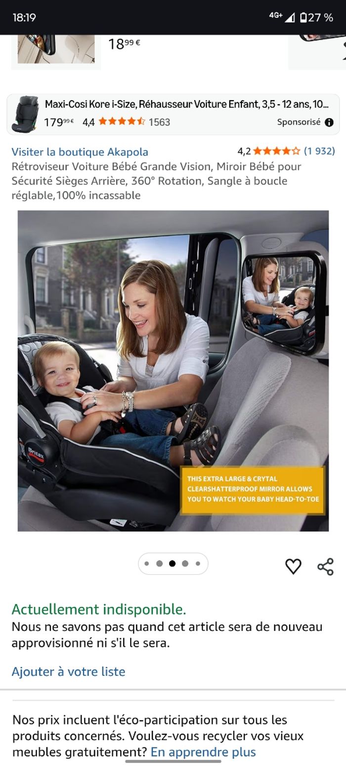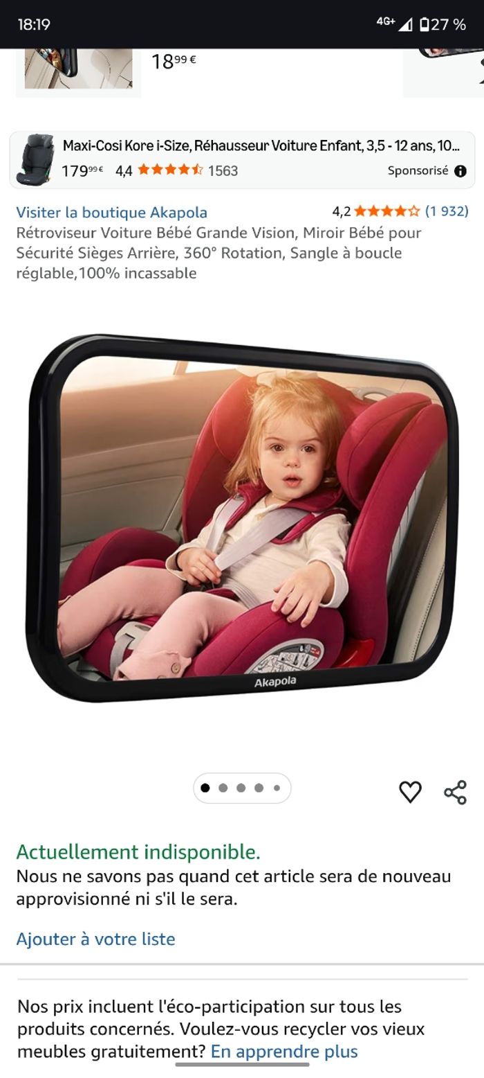 Rétroviseur Voiture Bébé Grande Vision (Miroir Bébé pour Sécurité Sièges Arrière) bon état  - photo numéro 1