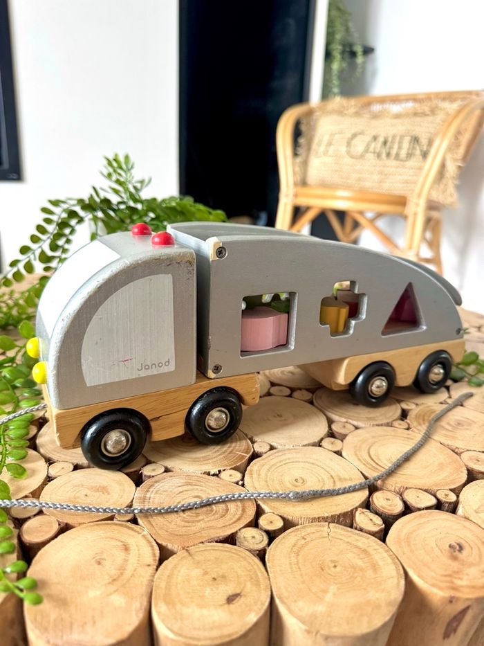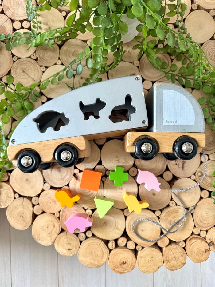 🌸JANOD 🌸 —> Grand Camion bois JANOD en bois 🪵 formes et animaux à tirer Maison non fumeur - envoi rapide et soigné 📦