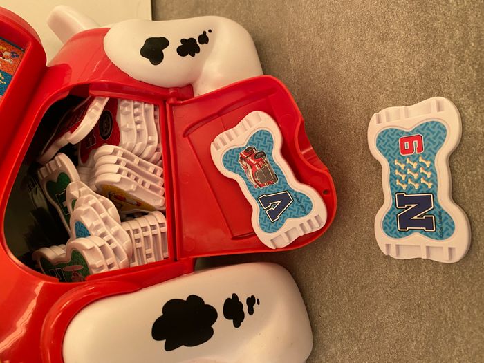 Jouet éducatif Pat Patrouille Marcus croc'lettres Marque V-Tech Comme neuf acheté + de 40€ Noël dernier Pars en mission avec Marcus de la Pat' Patrouille ! Apprends les lettres et fais plein de découvertes avec Marcus croc’lettres ! Donne un os-friandise à Marcus et il te dira la lettre, le son de cette lettre, un mot commençant par cette lettre et bien davantage ! 4 modes de jeu pour devenir un vrai pilote en compagnie de Ryder : - Donne une friandise à Marcus pour apprendre les lettres, leurs sons et les couleurs. - Marcus te dit le mot illustré et sa première lettre lorsque tu lui donnes une friandise. - Réponds aux questions de Marcus en lui donnant le bon os. - Insère une friandise pour écouter l’une des 26 mélodies. Mais aussi : - Appuie sur le badge lumineux pour écouter des phrases. - Les yeux de Marcus s’ouvrent et se ferment et ses oreilles bougent. - Marcus peut aussi apprendre la première lettre de ton prénom ! 26 os-friandises ! + de 250 mélodies, phrases et sons amusants ! Lumière et sons réalistes Avec la vraie voix de Marcus ! Réglage du volume sonore