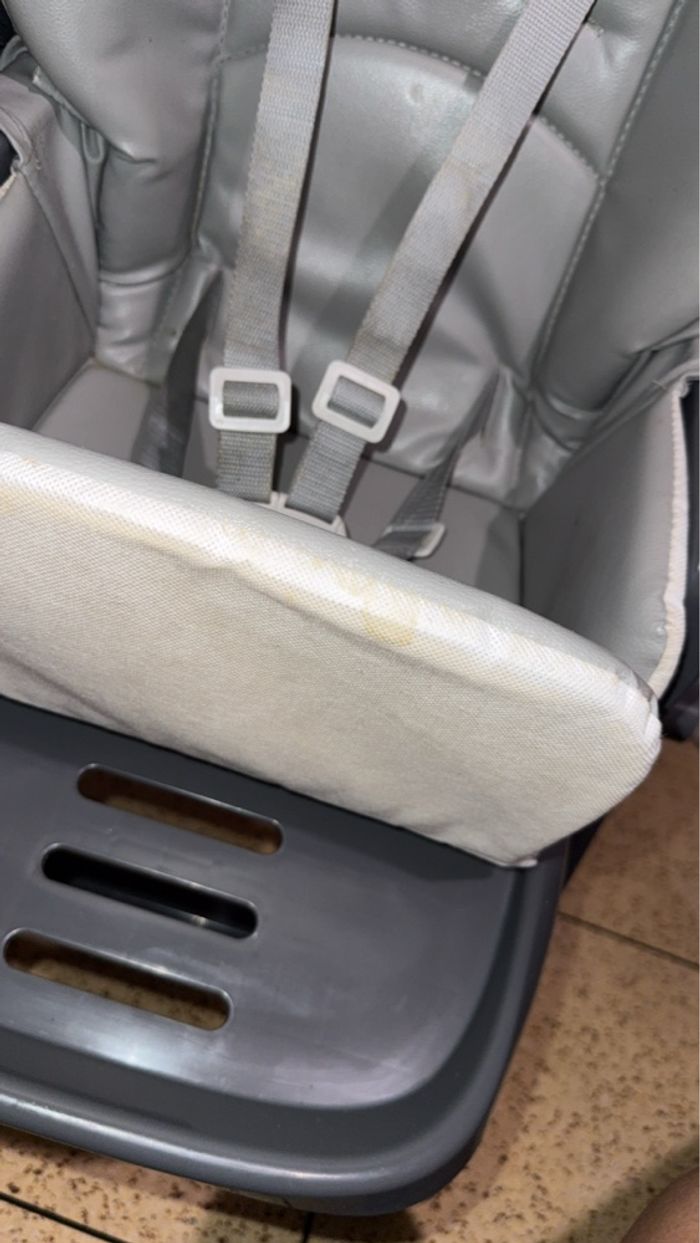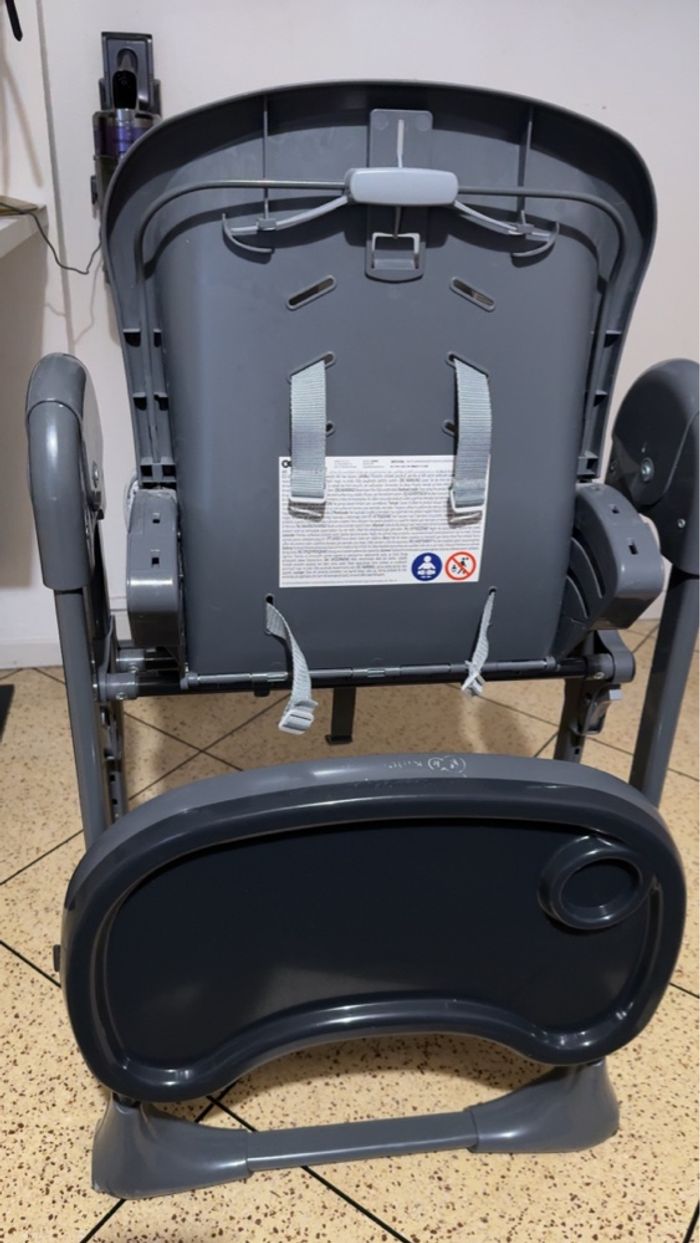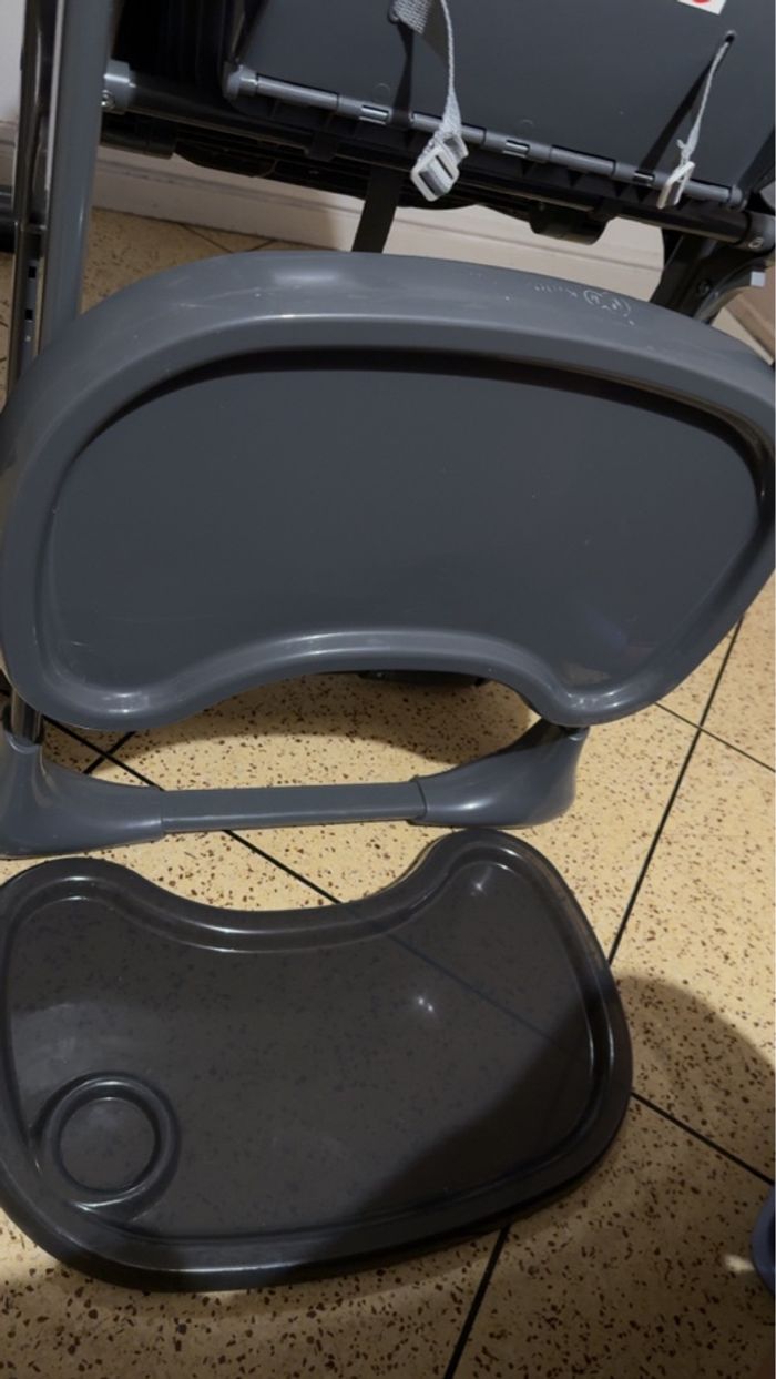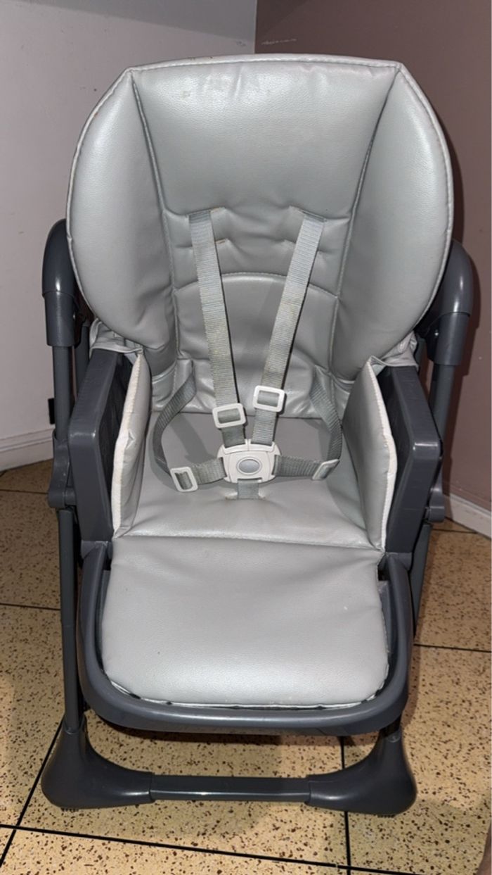 Je vends une chaise haute Kinderkraft Yummy, très pratique au quotidien. Réglable en hauteur avec dossier inclinable, plateau amovible et repose-pieds ajustable. Se plie facilement pour le rangement. Harnais de sécurité inclus. ⚠️ À noter : • Il manque les 2 petits coussins du harnais • Présence de quelques taches d’usage (voir photos) • Fonctionne parfaitement malgré ces défauts Idéale pour les repas de bébé, facile à nettoyer.